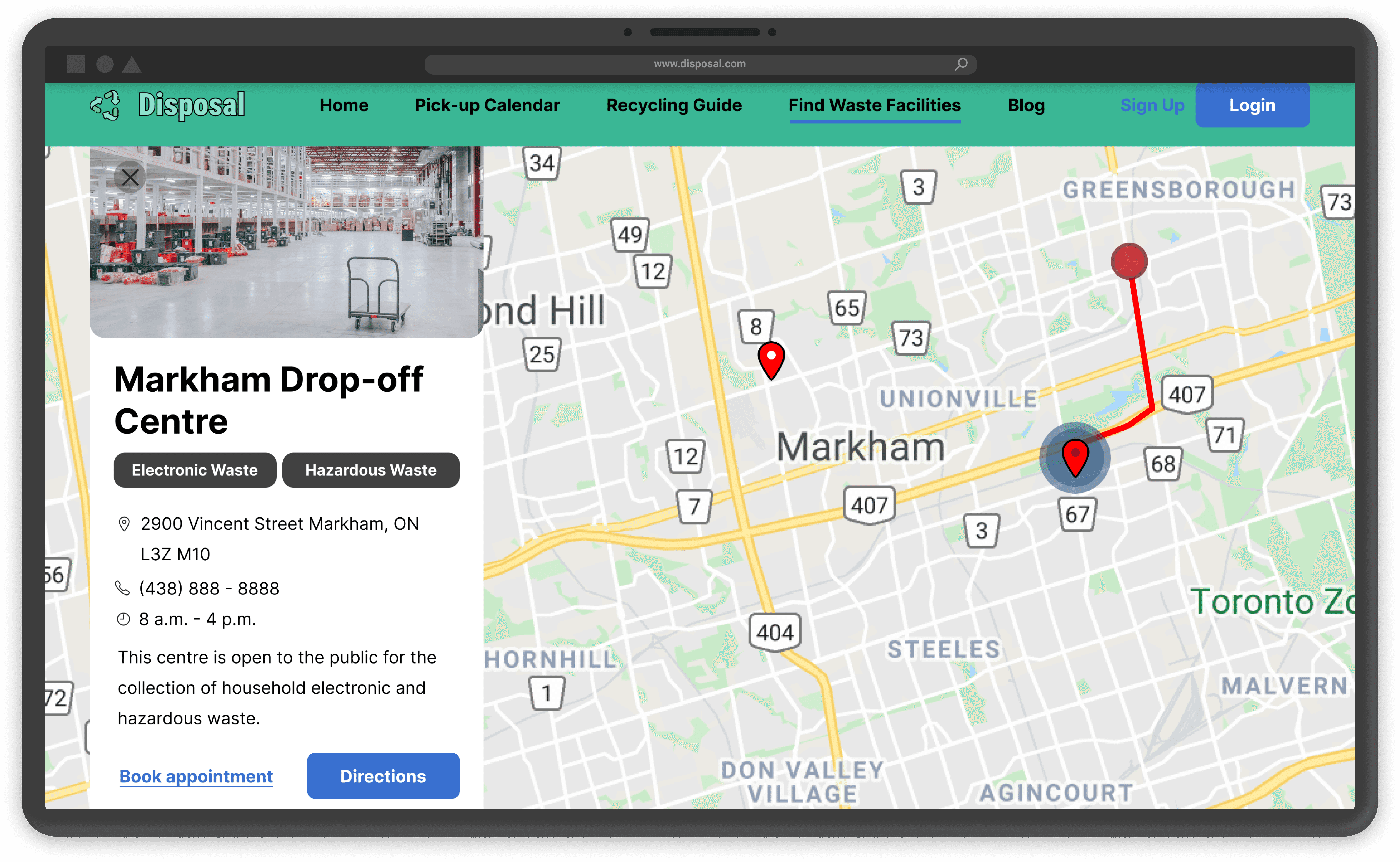Locate nearby drop-off centres and recycling depots to unload waste not accepted for curbside pick-up.